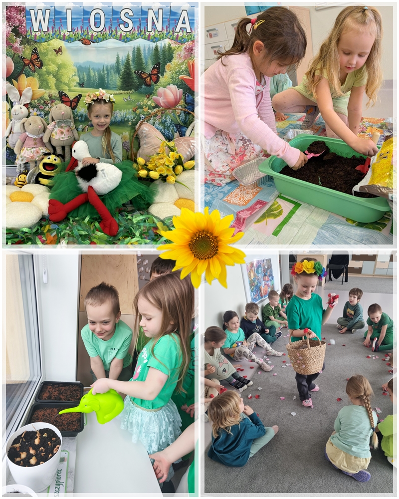 20 marca w naszym przedszkolu radośnie powitaliśmy pierwszy dzień wiosny! Był to wyjątkowy czas pełen uśmiechu, zabawy i kolorów. Dzieci przyszły ubrane w wiosenne stroje – dominowały odcienie zieleni oraz
