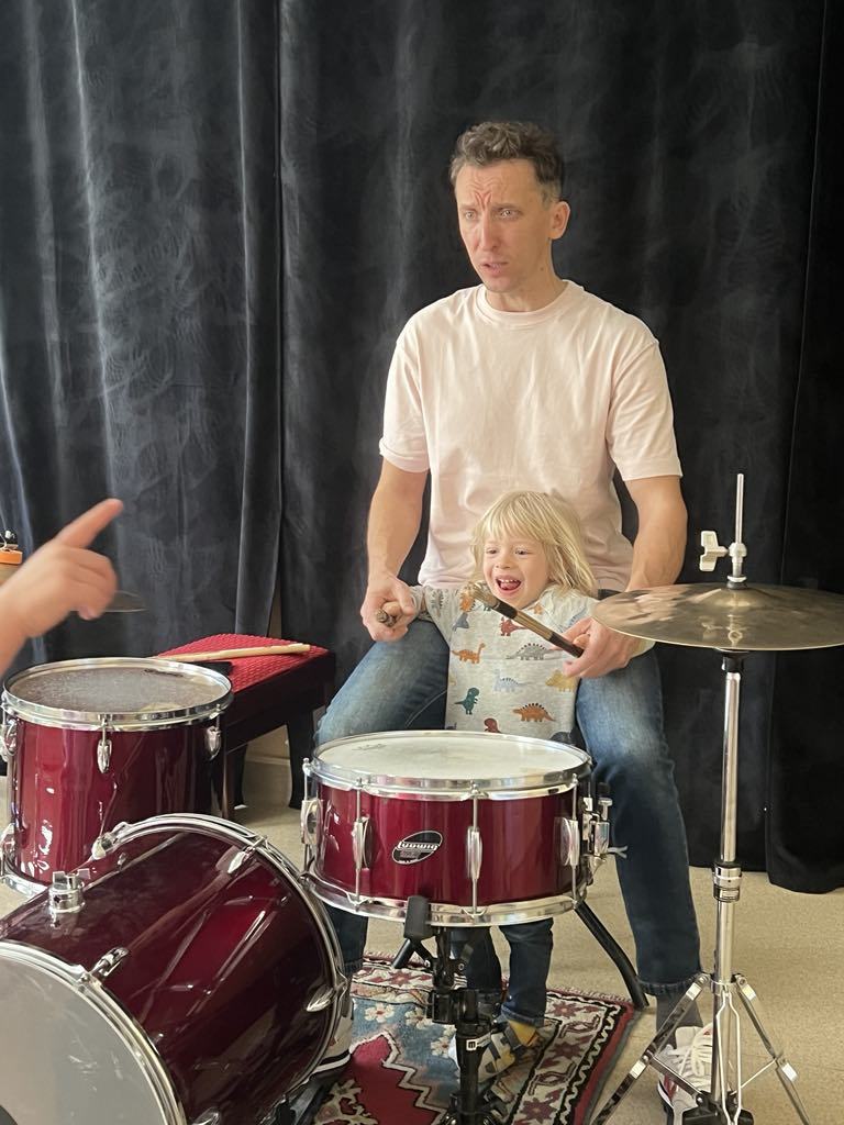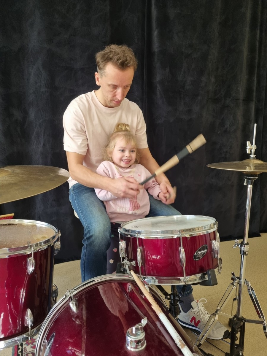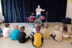 W miniony piątek nasze przedszkolaki miały okazję spróbować swoich sił w roli perkusistów. Warsztaty muzyczne z perkusją wniosły do naszego przedszkola mnóstwo pozytywnej energii i radości. Muzyczne rozpoczęcie dnia wywołało uśmiechy na buziach młodszych i starszych. Po krótkim zapoznaniu się z instrumentem, każde z dzieci miało szanse, z pomocą pana Michała, na nim zagrać. Pomieszczenie wypełniło się różnorodnymi rytmami – od hip hopu aż po disco. Niekiedy rytm wygrywany na perkusji podrywał do tańca, innym razem wszyscy uczestnicy warsztatów czekali z niepewnymi minami na moment kulminacyjny. To doświadczenie poza rozwijaniem poczucia rytmu, pomogło dzieciom odkryć w jaki sposób różne dźwięki mogą wpłynąć na nasz nastrój i emocje. Z niecierpliwością czekamy na kolejne muzyczne przygody!