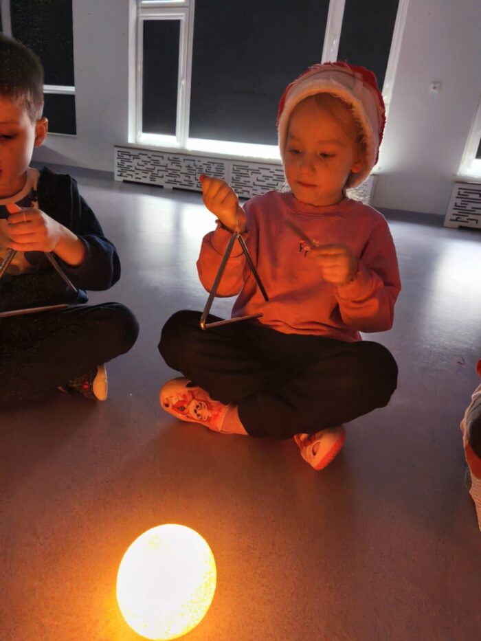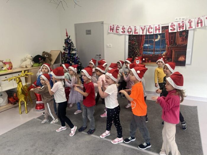 W ramach projektu „Muzyczne kroczki przedszkolaka” 16 grudnia dzieci podczas zajęć wykonały “Mikołajkowy taniec”. Małe stopy wybijały rytm szczęścia, a migające lampki na choince dodawały blasku zimowym tańcom. Przedszkolaki z wielką pasją rozwijały swoje umiejętności rytmiczne, udowadniając, że muzyka to najlepszy sposób na powitanie zimy. To był dzień pełen tanecznej energii! Poznane układy towarzyszyły nam w świątecznym okresie dodając uśmiechu w ten magiczny czas.