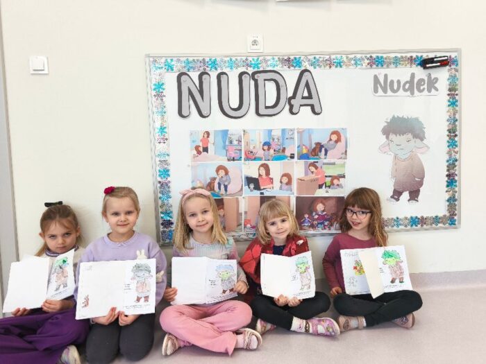 W tym tygodniu poznaliśmy kolejnego bohatera z krainy Czuciaków – Nudka. Podczas zajęć dzieci dowiedziały się, że nuda to uczucie, które pojawia się wtedy, gdy nic nas nie zajmuje, a czas wydaje się płynąć wyjątkowo wolno.
