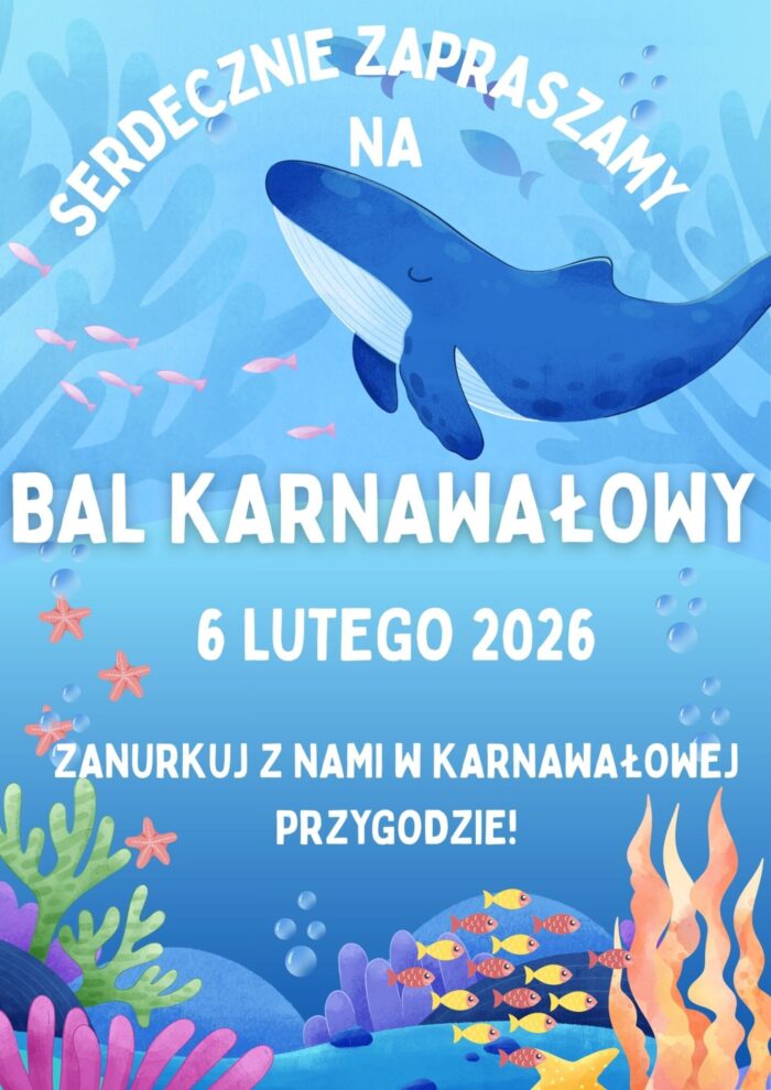 6 lutego (piątek) wspólnie z dziećmi zanurkujemy w morzu tańców, śmiechu i karnawałowych niespodzianek podczas Balu Karnawałowego.🎈