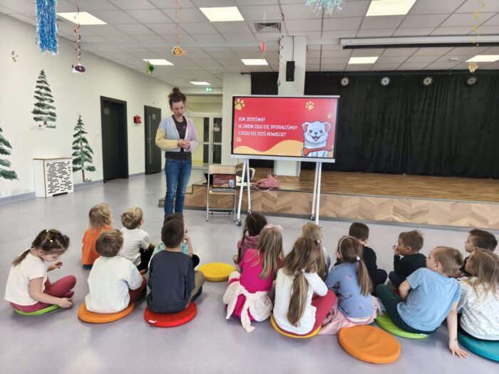 Zajęcia miały formę aktywnego wykładu, podczas którego dzieci obejrzały film edukacyjny przedstawiający dwie różne relacje człowieka ze zwierzęciem. Przedszkolaki z dużym zaangażowaniem uczestniczyły w spotkaniu – chętnie odpowiadały na pytania oraz dzieliły się swoimi spostrzeżeniami. Podczas zajęć dzieci dowiedziały się m.in.: