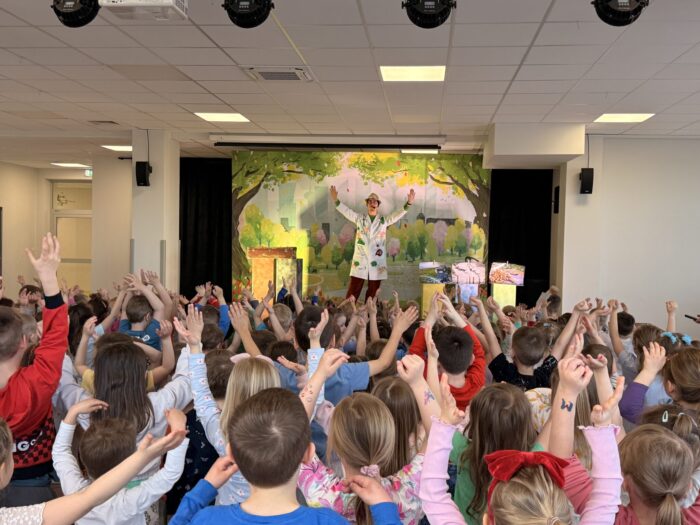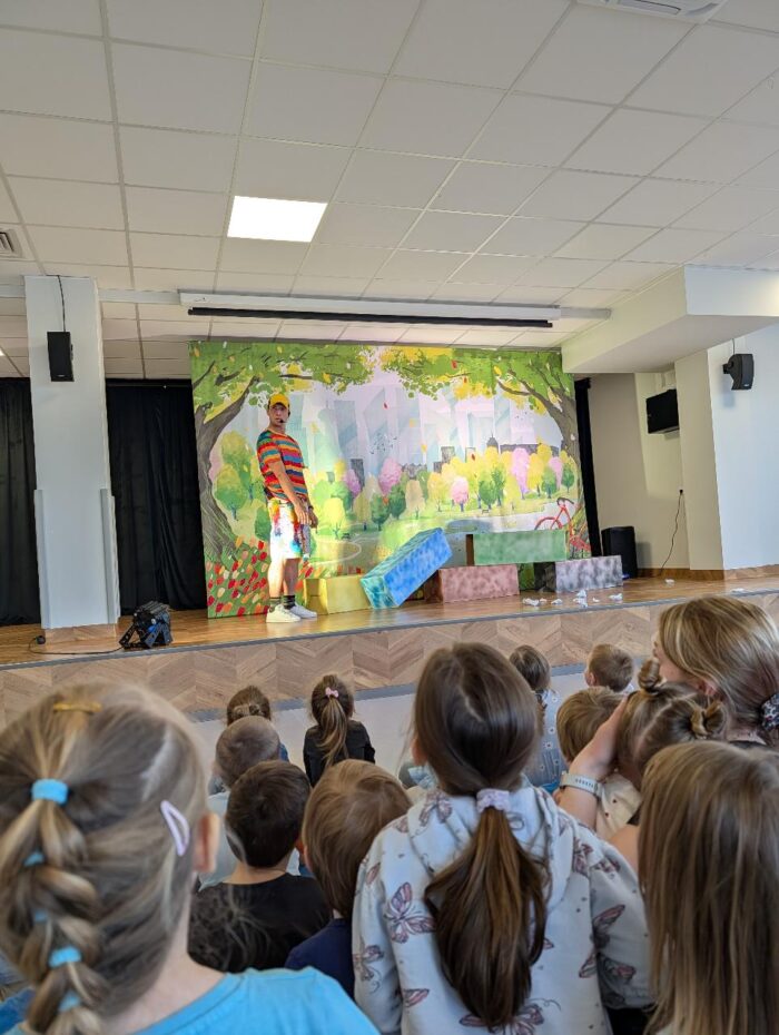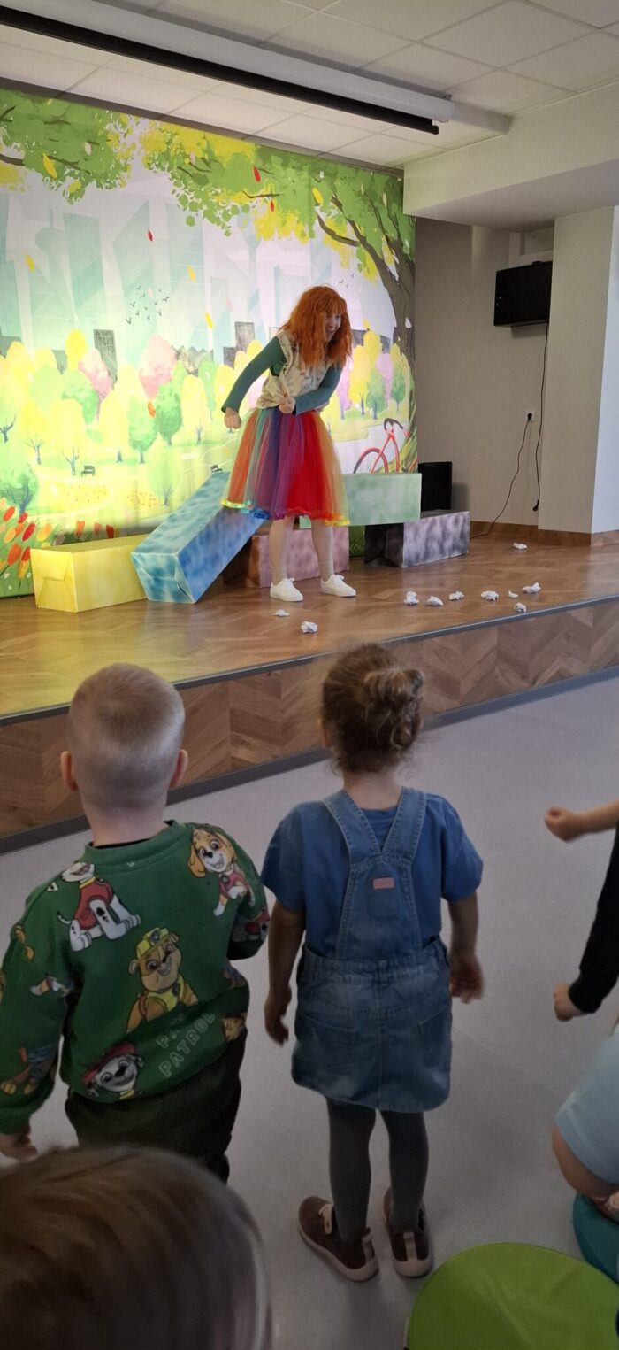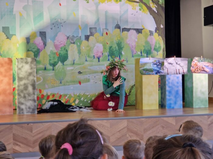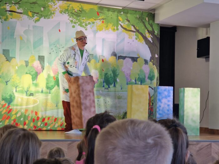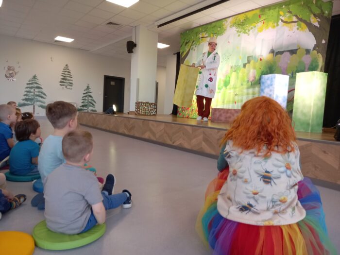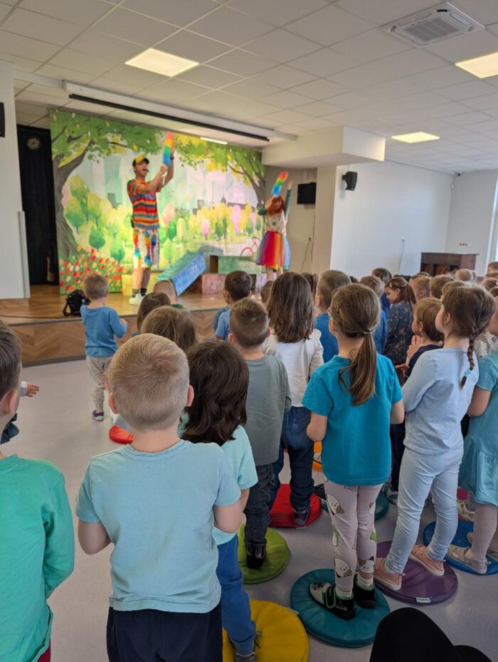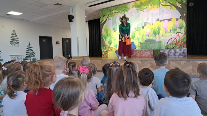 W czwartek nasze przedszkole odwiedził teatr Kwatera, który zaprezentował spektakl pt. „Hela i Piotruś sprzątają świat”. Przedstawienie opowiadało historię rodzeństwa, które wyrusza w niezwykłą podróż, by pomóc uratować naszą planetę. Dzieci razem z profesorem, który im towarzyszy, szukają rozwiązań, aby uchronić Ziemię przed zanieczyszczeniami. Naukowiec wyjaśnia, czym grozi zanieczyszczenie środowiska oraz w jaki sposób zadbać o otoczenie. Dzięki ciekawej fabule, humorowi i aktywnemu udziałowi przedszkolaki mogły w praktyczny sposób dowiedzieć się, jak dbać o środowisko, prawidłowo segregować odpady oraz podejmować świadome, ekologiczne decyzje każdego dnia.