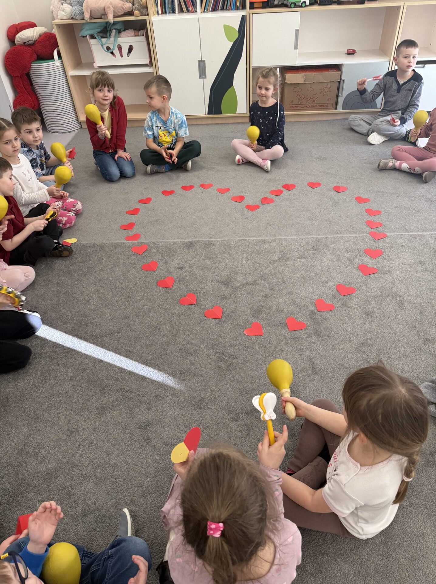 „Muzyczne serduszka” – pod takim hasłem zrealizowaliśmy kolejne zajęcia w ramach projektu „Muzyczne kroczki przedszkolaka”. Podczas spotkania dzieci wykonały piękny taniec z serduszkami, z dużym zaangażowaniem i radością prezentując przygotowany